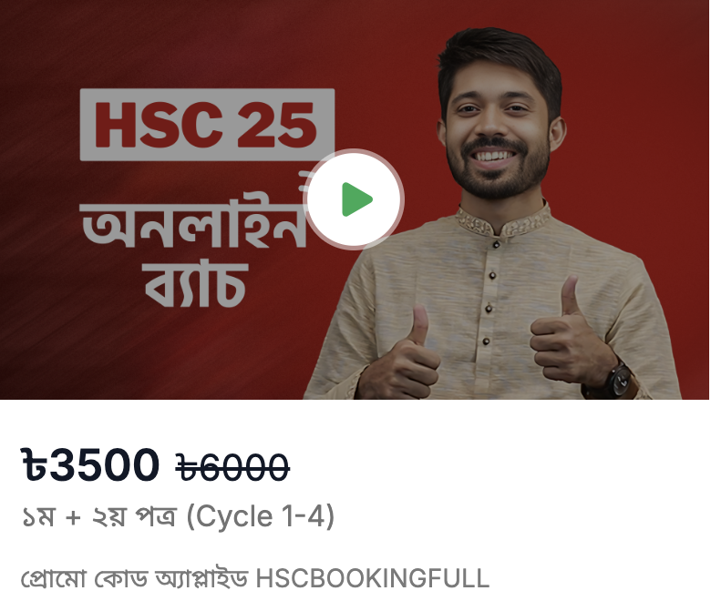 | HSC 26 অনলাইন ব্যাচ – বাংলা 2.0 | 25% | Get Discount |